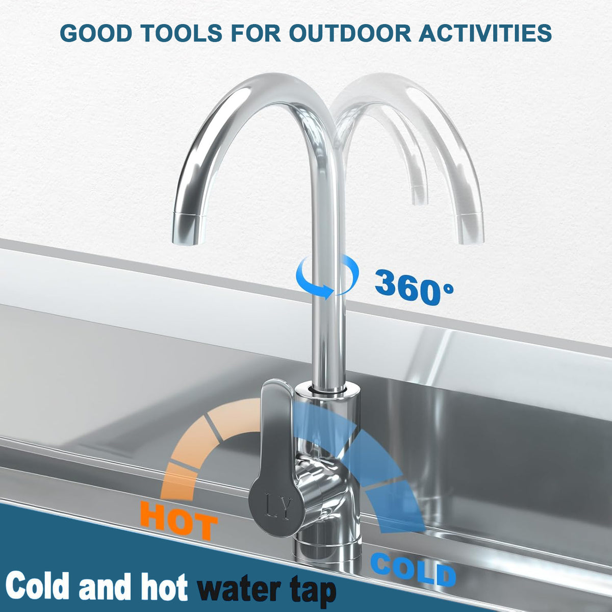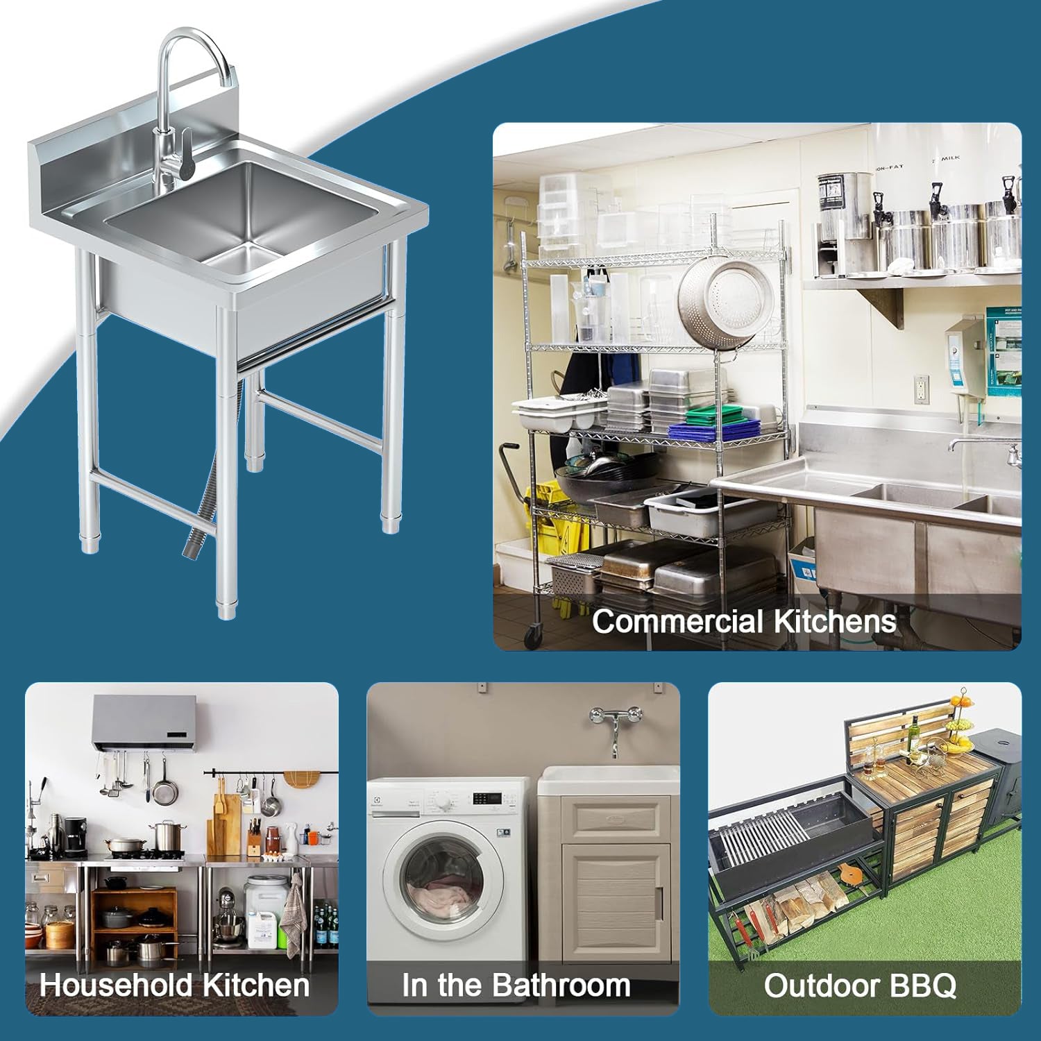 【No geographical restrictions!】The utility sink is very well crafted and tested, the sink is very strong as a whole after installation, The supporting legs and the whole sink body are super strong. This ensures that this sink is sturdy and stable.Because this sink uses lightweight stainless steel, you can move this portable sink to use it anywhere.