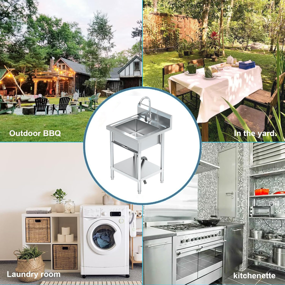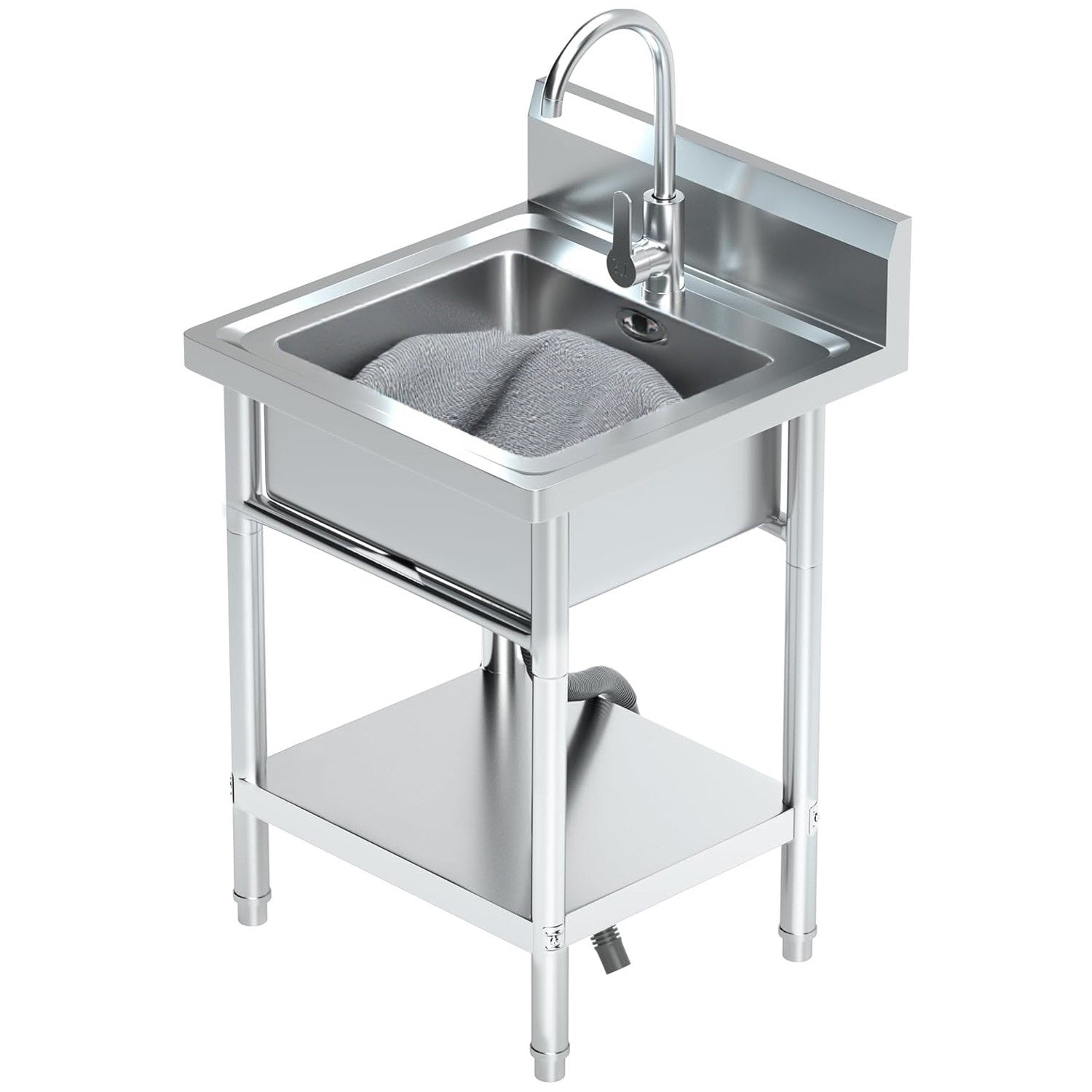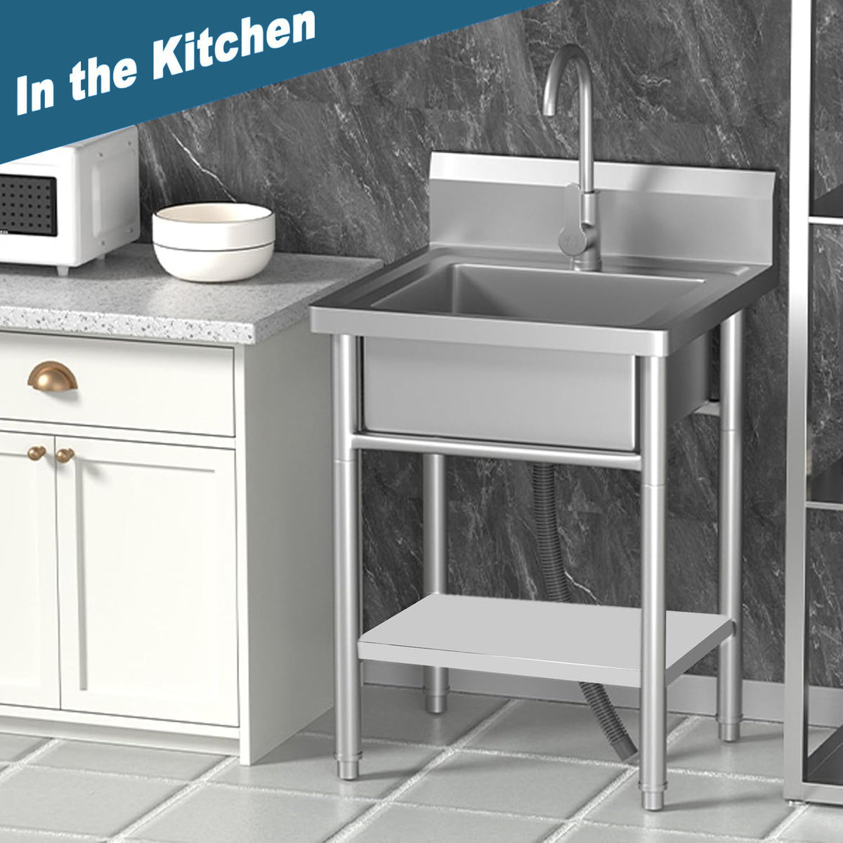 Utility Sink Freestanding Single Bowl Stainless Steel Laundry Sink with Shelf board Hot and Cold Water Plumbing for Kitchen and Bathroom