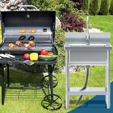【Are you still using cheap sink in your yard?】 Why don't you try this utility sink!This portable sink is made of stainless steel material. The sleek appearance also make the stainless steel sink easy to maintain and clean in your daily life.The high strength stainless steel material also makes the sink more sturdy and corrosion resistant.This has to be the best utility sink for outdoor use!